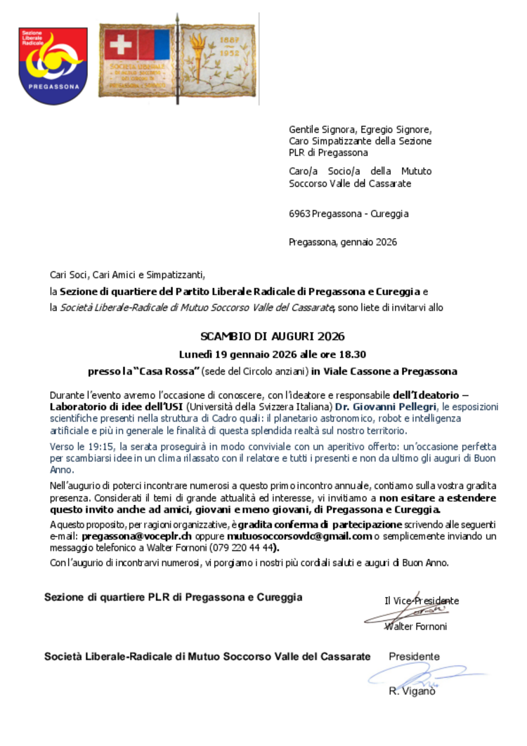 PLR Pregassona e Cureggia con SLR Mutuo Soccorso – Scambio di auguri 2026
