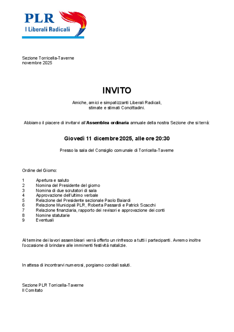 PLR Torricella-Taverne - Assemblea ordinaria